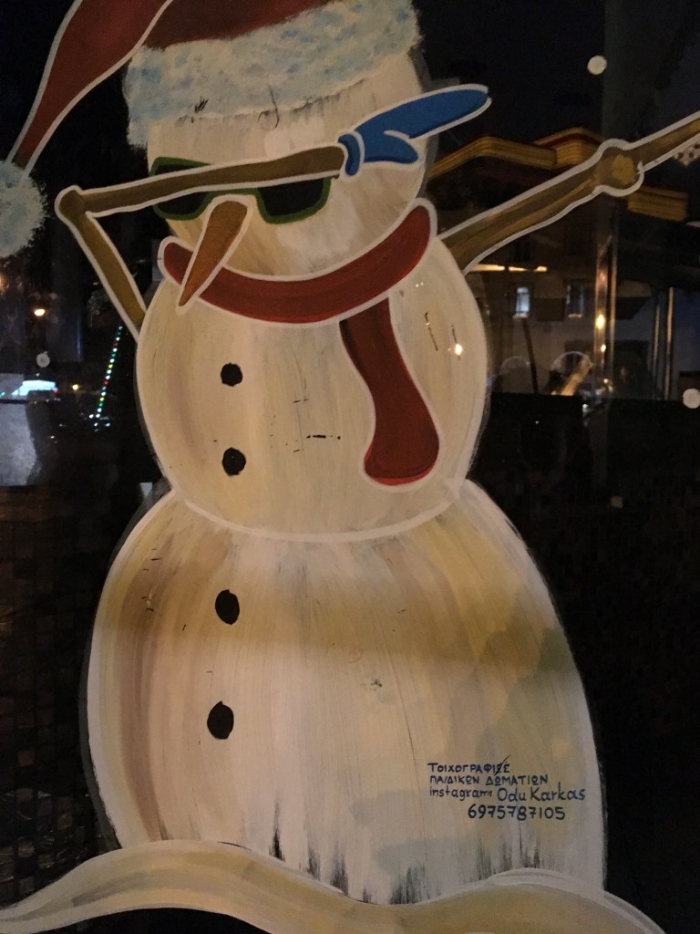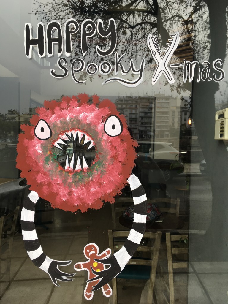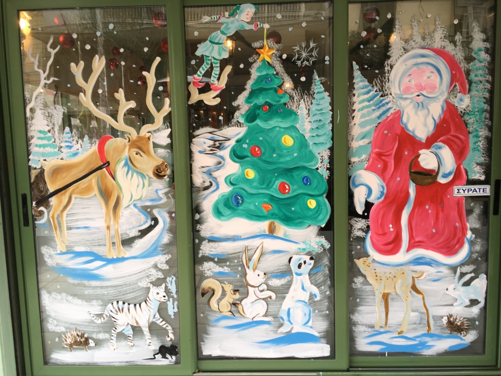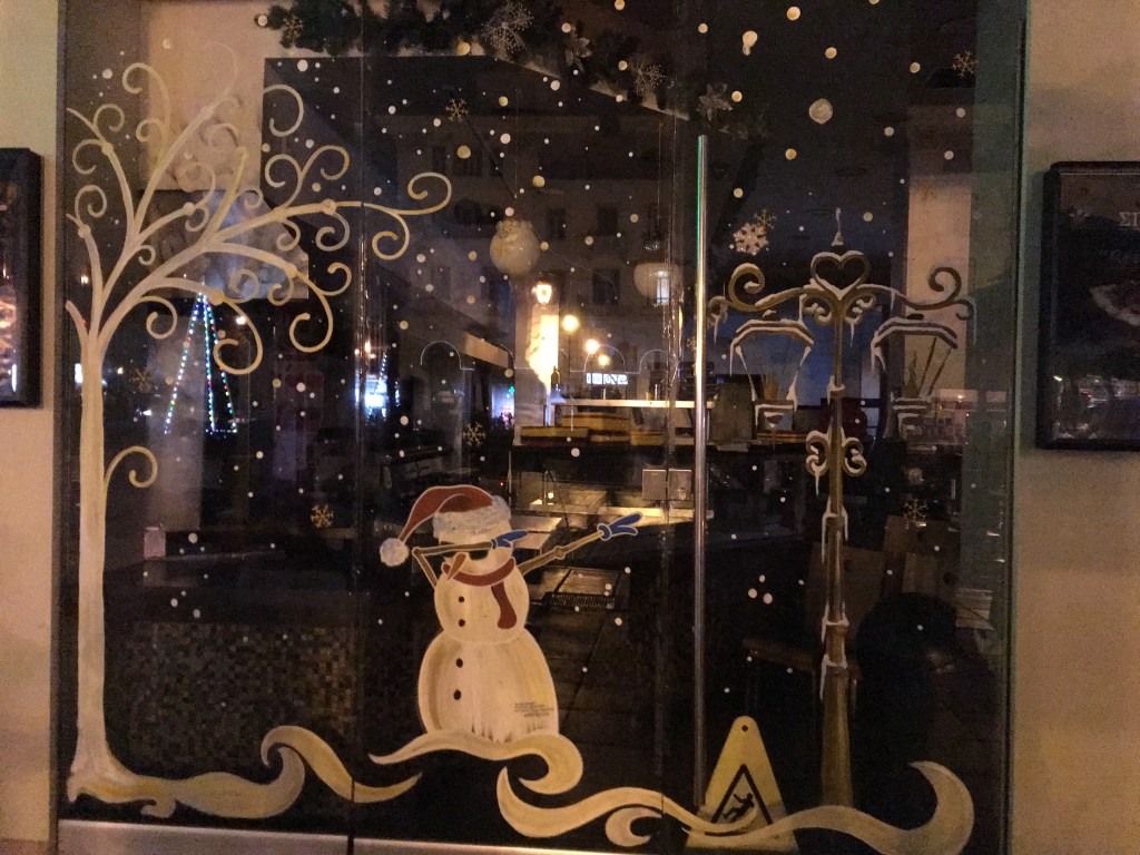 Weihnachten und Neujahr Fensterzeichnungen von Fotos aus Thessaloniki, 2018