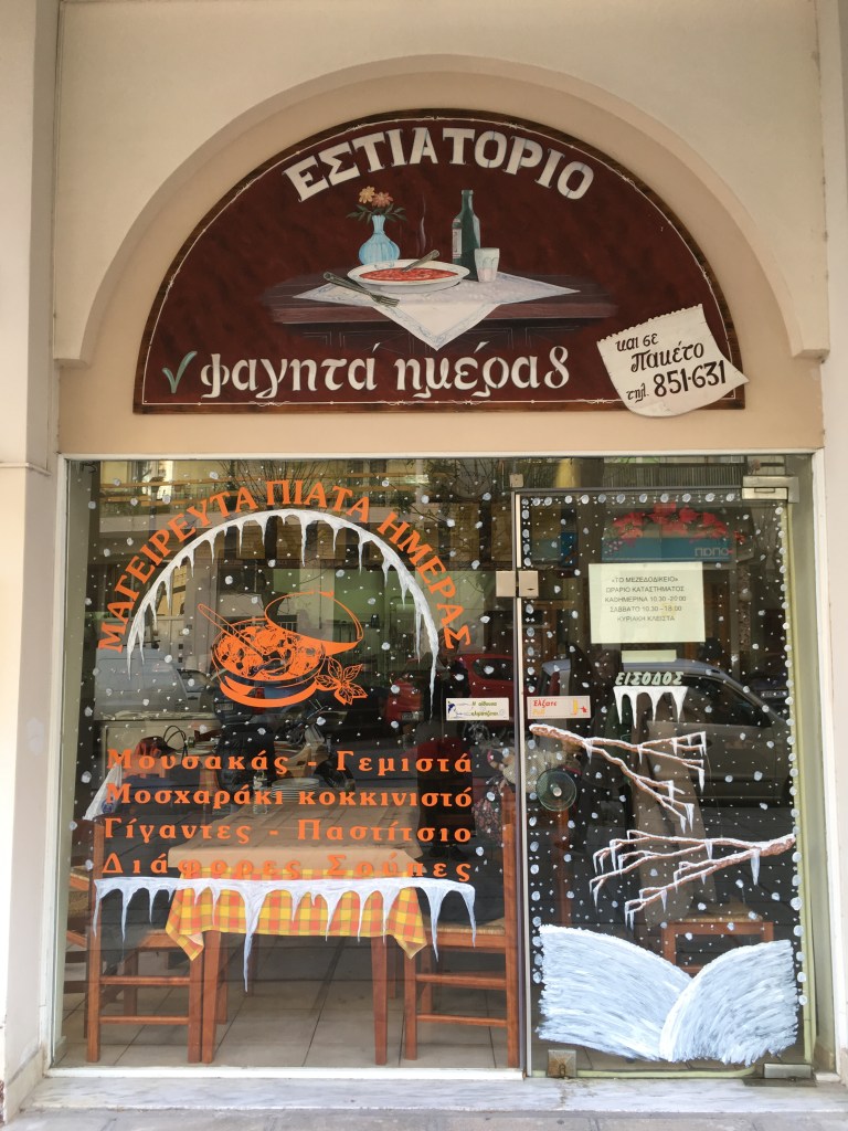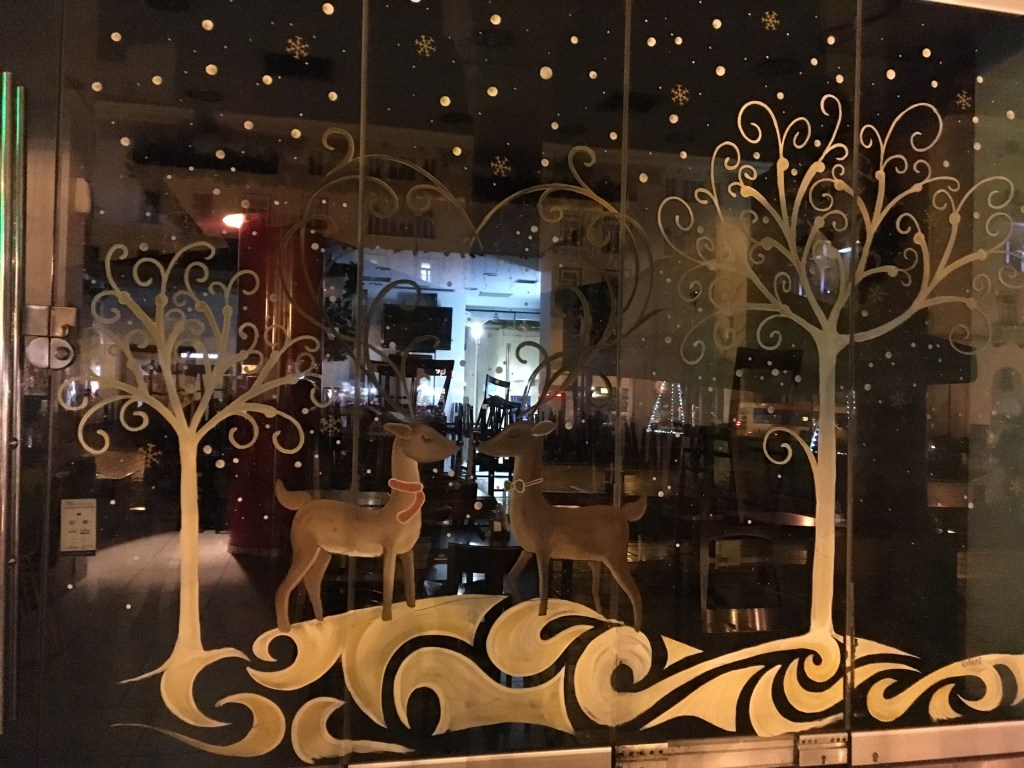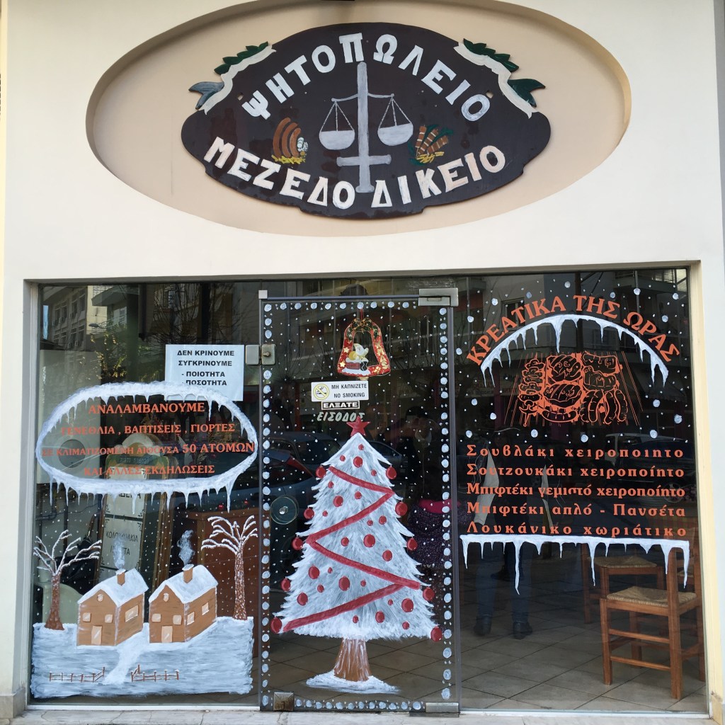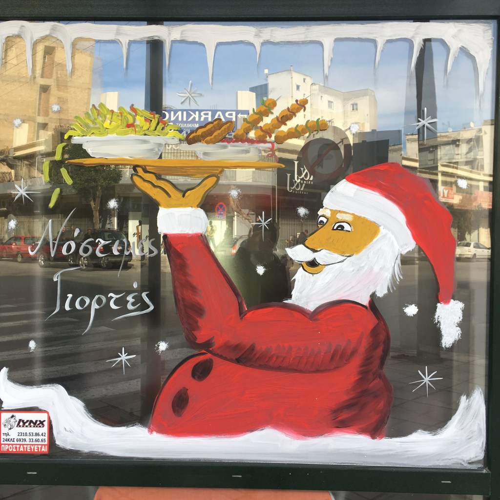 Weihnachten und Neujahr Fensterzeichnungen von Fotos aus Thessaloniki, 2018