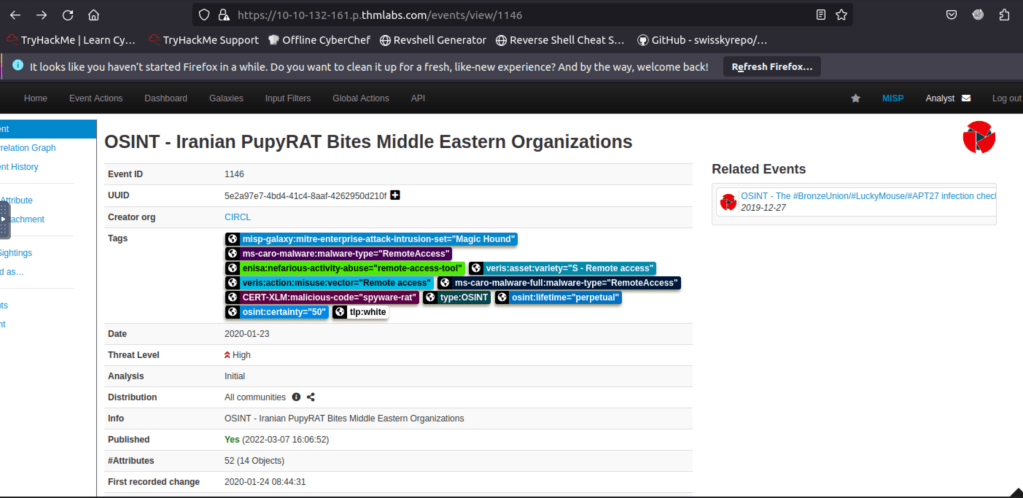 MISP – I have just completed this room! Check it out: https://tryhackme.com/room/misp #tryhackme #security #blueteam #threatintelligence #MISP #InformationSharing #misp via @realtryhackme